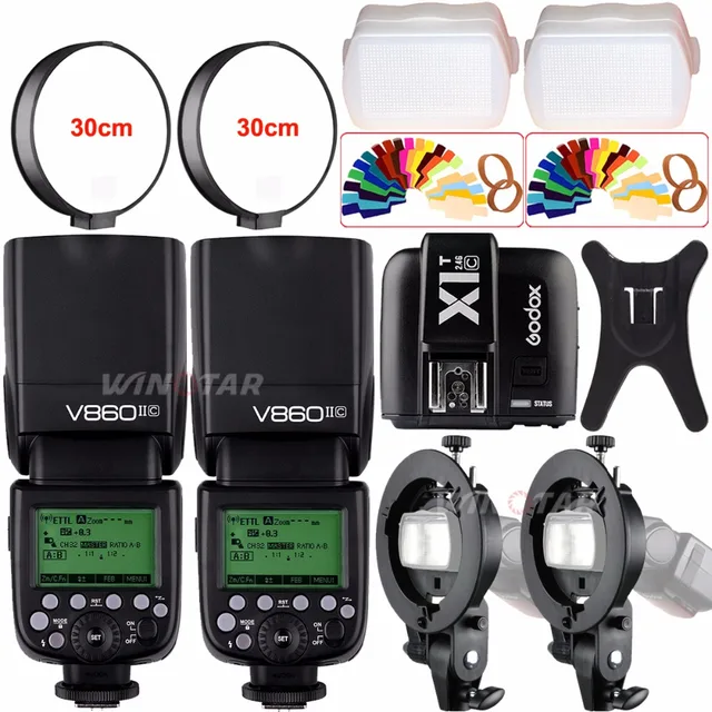 Best Offers 2pcs Godox V860II TTL Speedlite Flash GN60 HSS 1/8000s with Li-ion Battery+X1T-C/N/F/S for Canon Nikon Sony Fujifilm Olympus