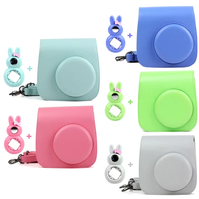 Best Offers 5 Colors Quality PU Leather Camera Case and Rabbit Close-Up Selfie Lens for Fujifilm Instax Mini 9/ Mini 8 Instant Film Camera
