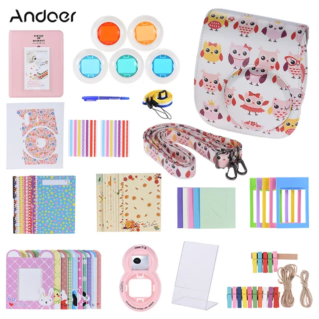 Cheap Andoer 14 in 1 Accessories Kit for Fujifilm Instax Mini 9/8//8s w/ Camera Case/Strap/Sticker/Selfie Lens/Filter/Album//Pen etc