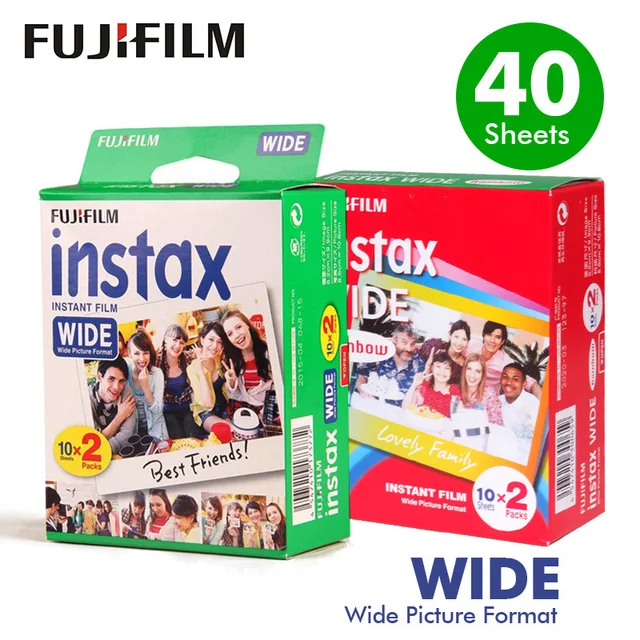 Genuine10.20.40 Sheets Fujifilm Instax Wide White edge + Wide Rainbow Film for Fuji Instant Photo paper Camera 300/200/210/100